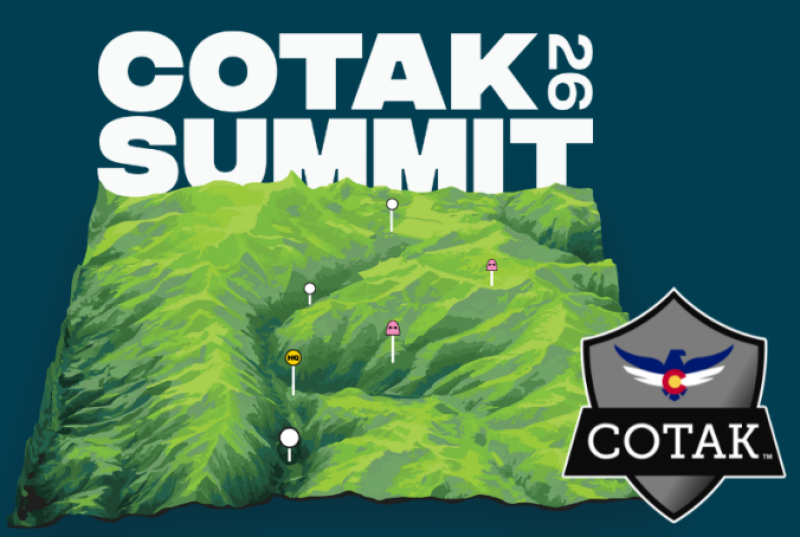 Registration for the 2026 COTAK Summit at the Copper Mountain Conference Center is now open! To register, visit cotak.gov/summit and click the “Registration” link. The cost to attend the Summit is $250 and includes breakfast and lunch during the main Summit (July 8-9), and access to the discounted hotel room block, which will be provided after registration. Space is limited and we expect the Summit to sell out, so be sure to register early!